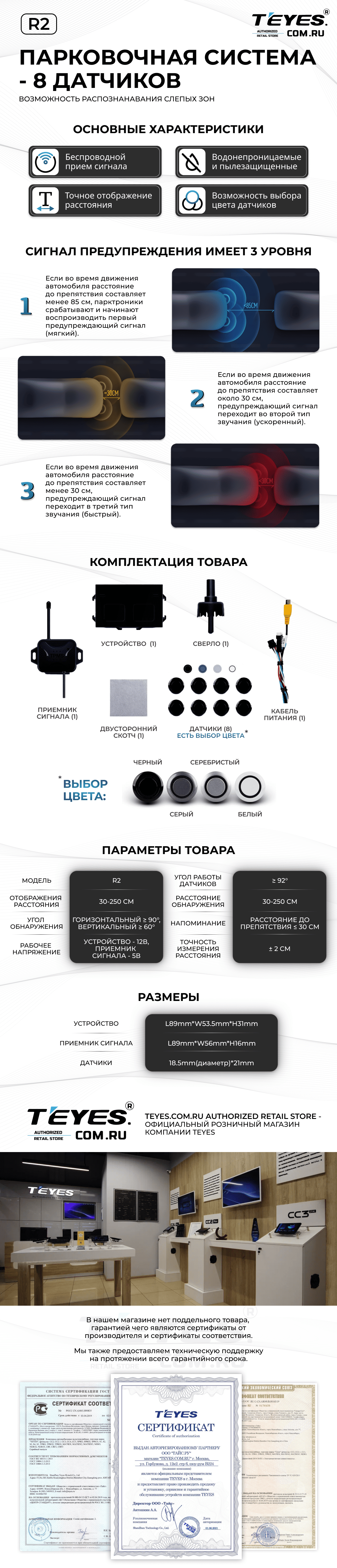 Передние и задние парктроники Teyes R2 для CC4 Pro / CC4 / CC4L / CC3 2K / CC3 / CC3L / CC2 Plus / SPRO Plus / TPRO2 / LUX ONE (Белые) 8-датчиков - купить всего за 19 900 руб. в интернет-магазине в Ангарске Teyes.com.ru. ✓ Самый лучший выбор мультимедиа ✓ Лучшая замена штатному ГУ ✓ Тел. +7 (800) 775-31-74