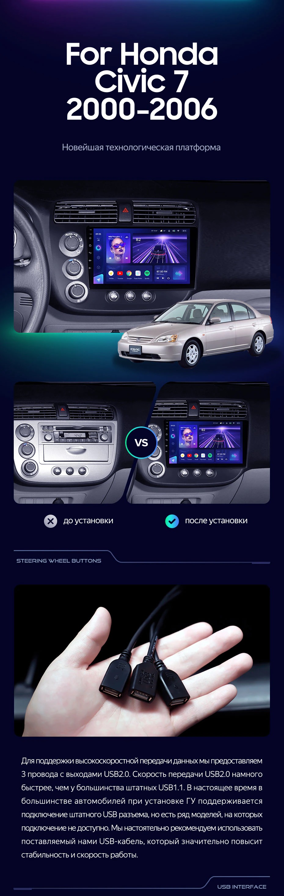 Штатная магнитола Teyes CC3 2K 360 6/128 Honda Civic 7 (2000-2006) F1 (13") - купить всего за 51 000 руб. в интернет-магазине в Ангарске Teyes.com.ru. ✓ Самый лучший выбор мультимедиа ✓ Лучшая замена штатному ГУ ✓ Тел. +7 (800) 775-31-74