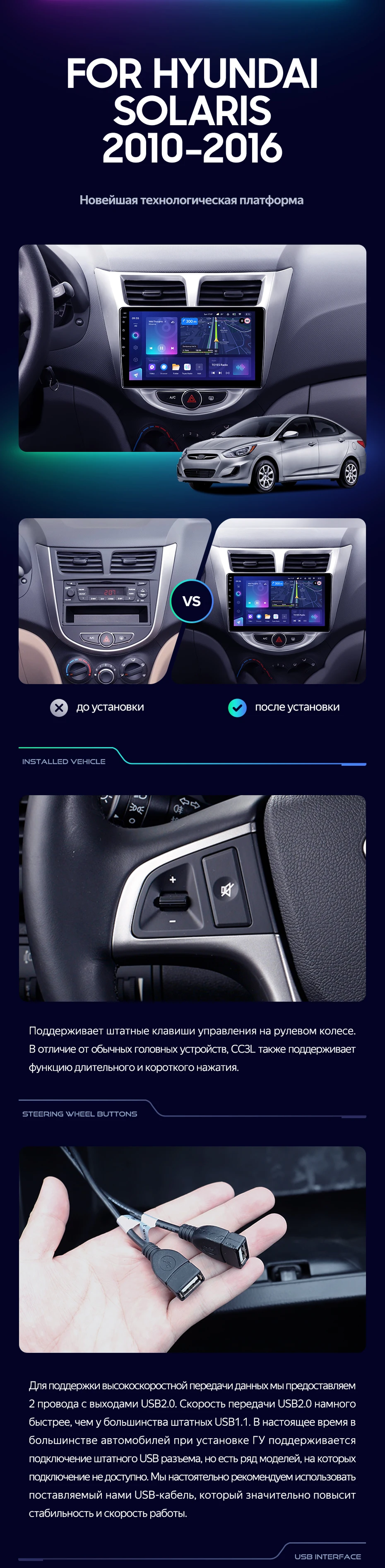 Штатная магнитола Teyes CC3 2K 360 6/128 Hyundai Solaris 1 (2010-2016) F2 (черный глянец) - купить всего за 54 210 руб. в интернет-магазине в Ангарске Teyes.com.ru. ✓ Самый лучший выбор мультимедиа ✓ Лучшая замена штатному ГУ ✓ Тел. +7 (800) 775-31-74