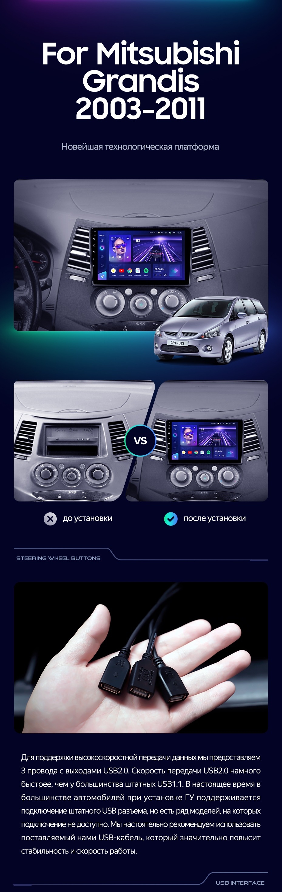 Штатная магнитола Teyes CC3 4/32 Mitsubishi Grandis 1 (2003-2011) F2 - купить всего за 34 530 руб. в интернет-магазине в Ангарске Teyes.com.ru. ✓ Самый лучший выбор мультимедиа ✓ Лучшая замена штатному ГУ ✓ Тел. +7 (800) 775-31-74