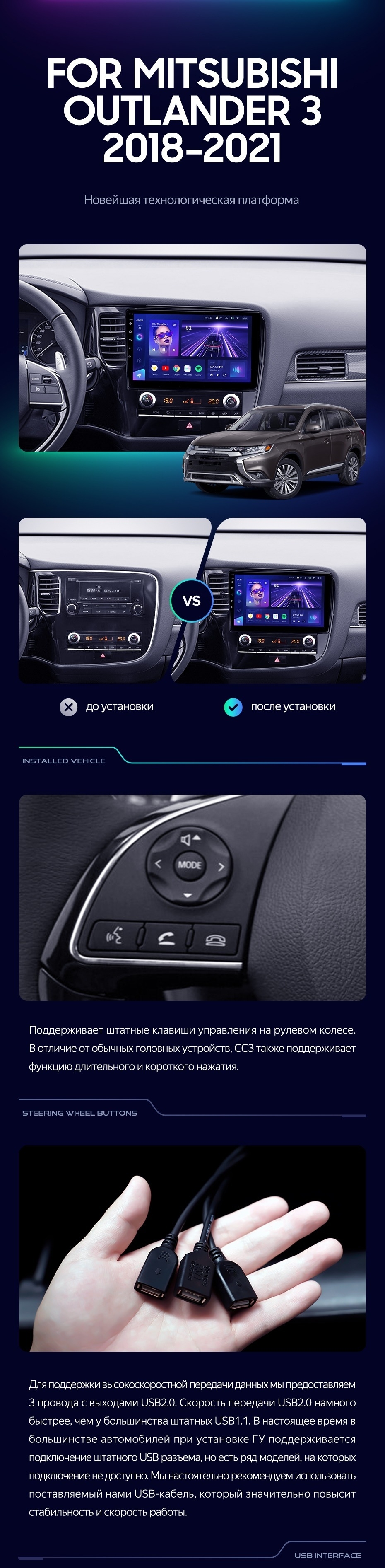 Штатная магнитола Teyes CC3 4/32 Mitsubishi Outlander 3 (2018-2021) - купить всего за 33 830 руб. в интернет-магазине в Ангарске Teyes.com.ru. ✓ Самый лучший выбор мультимедиа ✓ Лучшая замена штатному ГУ ✓ Тел. +7 (800) 775-31-74