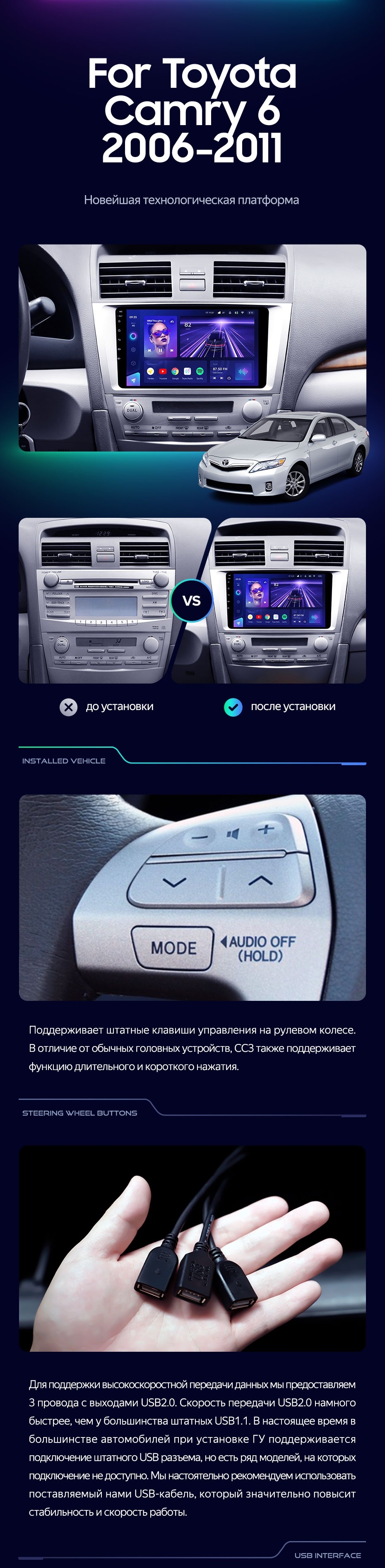 Штатная магнитола Teyes CC3 4/64 Toyota Camry 6 XV 40 (2006-2011) F1 - купить всего за 40 700 руб. в интернет-магазине в Ангарске Teyes.com.ru. ✓ Самый лучший выбор мультимедиа ✓ Лучшая замена штатному ГУ ✓ Тел. +7 (800) 775-31-74