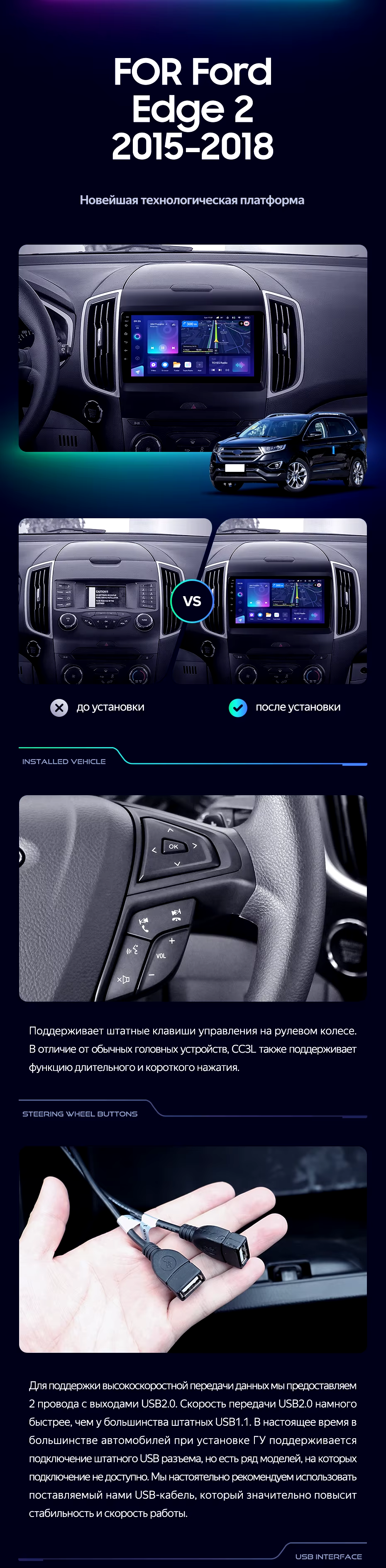 Штатная магнитола Teyes CC3L 4/32 Ford Edge 2 (2015-2018) F1 - купить всего за 28 800 руб. в интернет-магазине в Ангарске Teyes.com.ru. ✓ Самый лучший выбор мультимедиа ✓ Лучшая замена штатному ГУ ✓ Тел. +7 (800) 775-31-74