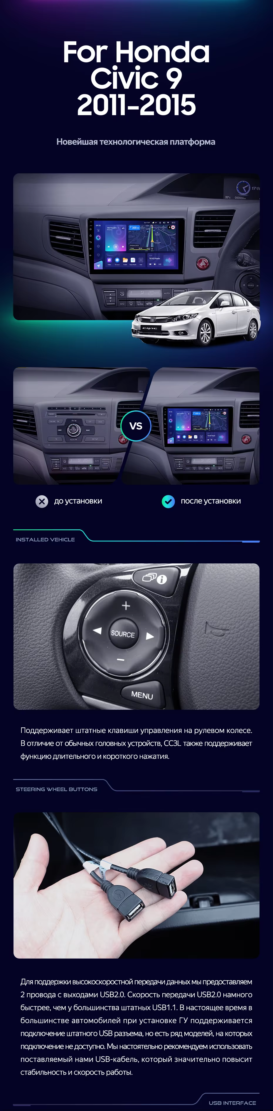 Штатная магнитола Teyes CC4 6/64 Civic 9 FB FK FD (2011-2015) Правый руль - купить всего за 49 400 руб. в интернет-магазине в Ангарске Teyes.com.ru. ✓ Самый лучший выбор мультимедиа ✓ Лучшая замена штатному ГУ ✓ Тел. +7 (800) 775-31-74