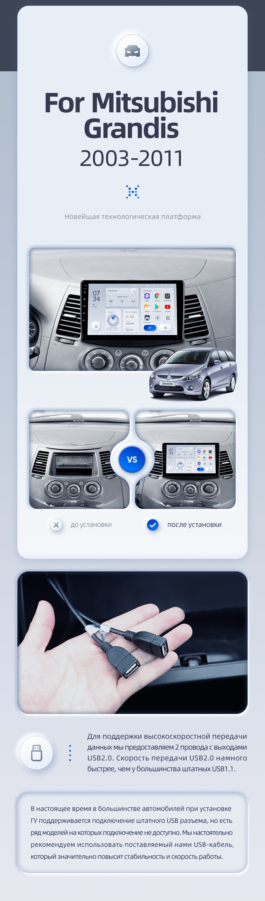 - Мультимедийные возможности: Поддерживает функцию разделения экрана для одновременной работы двух приложений. Имеется встроенный гироскоп и возможность подключения до 6 аналоговых камер.