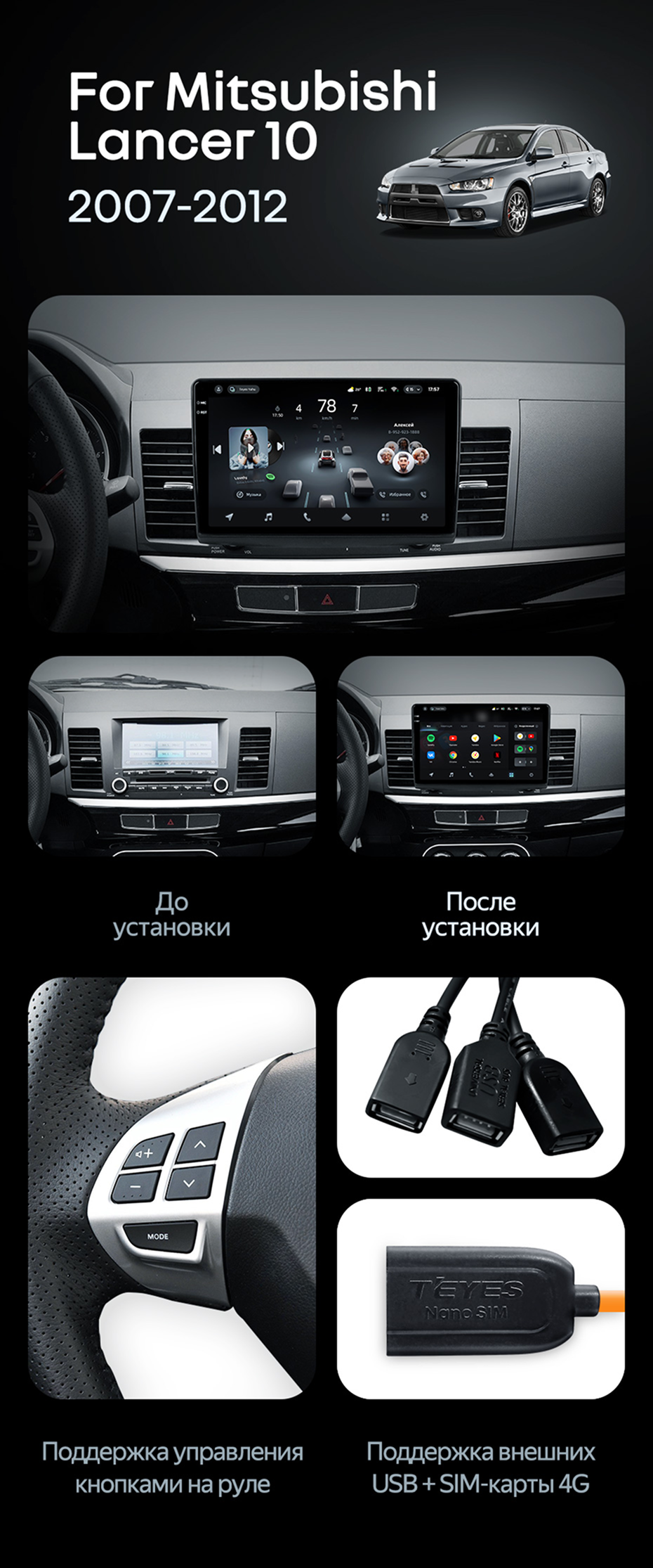 Штатная магнитола Teyes CC4 Pro 12/256 Mitsubishi Lancer 10 CY (2007-2012) Тип-A - купить всего за 67 420 руб. в интернет-магазине в Ангарске Teyes.com.ru. ✓ Самый лучший выбор мультимедиа ✓ Лучшая замена штатному ГУ ✓ Тел. +7 (800) 775-31-74