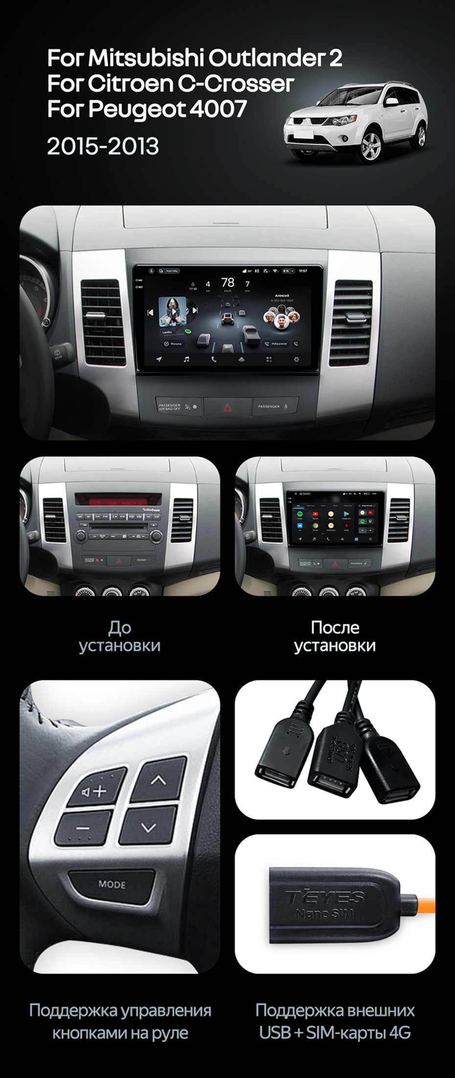 Штатная магнитола Teyes CC4 Pro 12/256 Mitsubishi Outlander 2 (2005-2011) Тип-A - купить всего за 67 900 руб. в интернет-магазине в Ангарске Teyes.com.ru. ✓ Самый лучший выбор мультимедиа ✓ Лучшая замена штатному ГУ ✓ Тел. +7 (800) 775-31-74