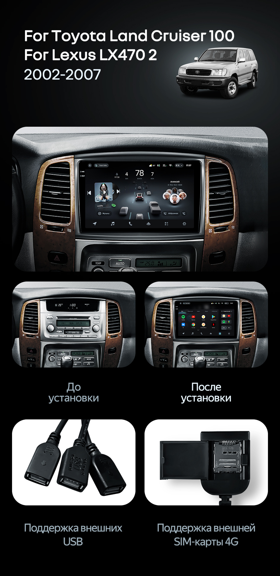 Штатная магнитола Teyes CC4 Pro 12/256 Toyota Land Cruiser LC 100 (2002-2007) Тип-C - купить всего за 70 650 руб. в интернет-магазине в Ангарске Teyes.com.ru. ✓ Самый лучший выбор мультимедиа ✓ Лучшая замена штатному ГУ ✓ Тел. +7 (800) 775-31-74