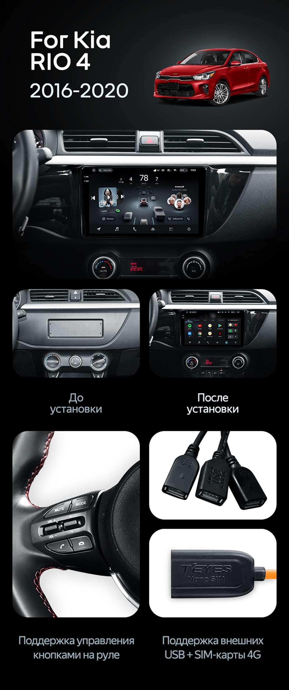 Штатная магнитола Teyes CC4 Pro 8/128 Kia Rio 4 (2016-2020) Тип-A - купить всего за 57 810 руб. в интернет-магазине в Ангарске Teyes.com.ru. ✓ Самый лучший выбор мультимедиа ✓ Лучшая замена штатному ГУ ✓ Тел. +7 (800) 775-31-74