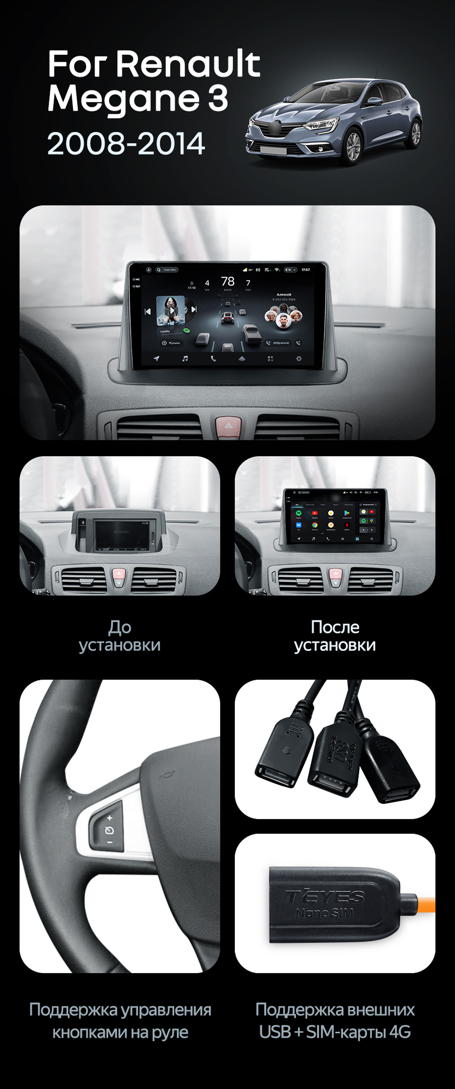 Штатная магнитола Teyes CC4 Pro 8/128 Renault Megane 3 (2008-2014) - купить всего за 59 800 руб. в интернет-магазине в Ангарске Teyes.com.ru. ✓ Самый лучший выбор мультимедиа ✓ Лучшая замена штатному ГУ ✓ Тел. +7 (800) 775-31-74