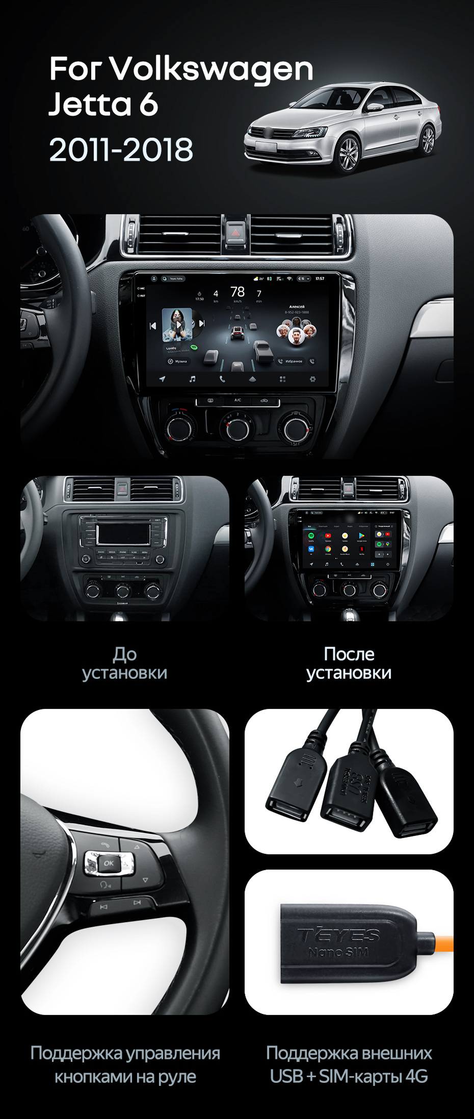 Штатная магнитола Teyes CC4 Pro 8/128 Volkswagen Jetta 6 (2011-2018) - купить всего за 58 300 руб. в интернет-магазине в Ангарске Teyes.com.ru. ✓ Самый лучший выбор мультимедиа ✓ Лучшая замена штатному ГУ ✓ Тел. +7 (800) 775-31-74
