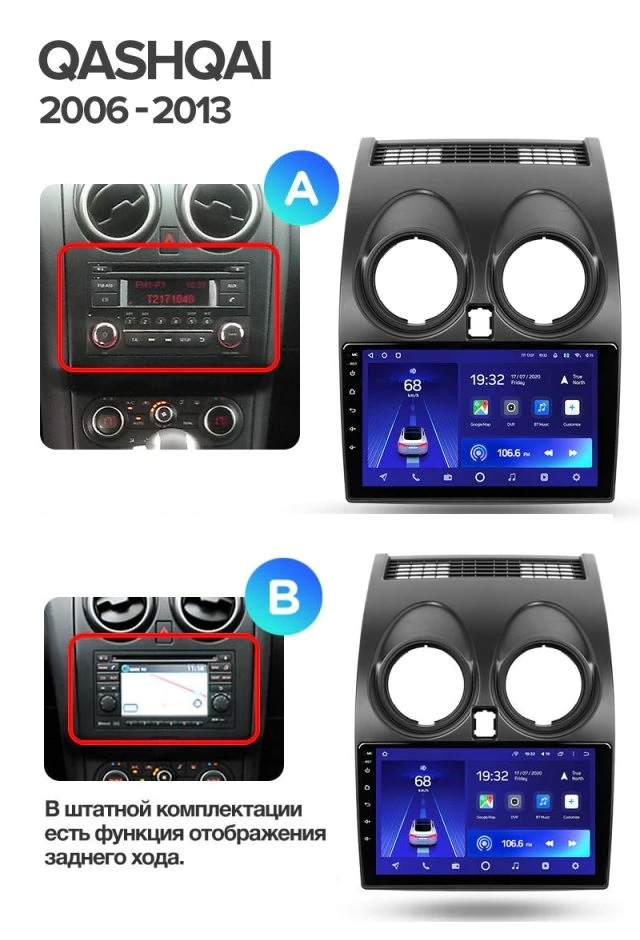 Полный комплект установки магнитолы Teyes с рамкой и проводкой можно выбрать в каталоге штатных магнитол Nissan Qashqai 1 J10 (2006-2013).