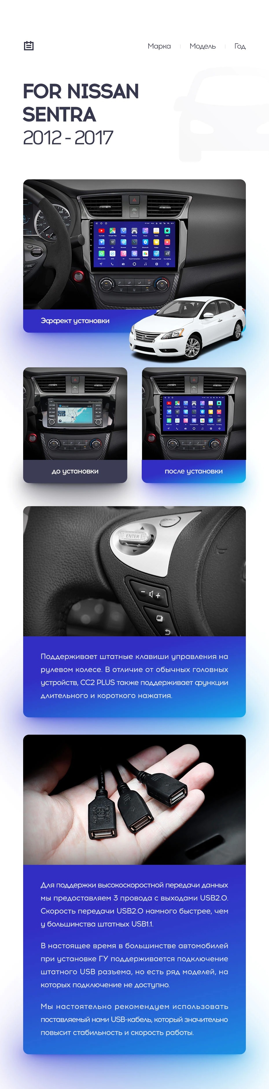Полный комплект установки магнитолы Teyes с рамкой и проводкой можно выбрать в каталоге штатных магнитол Nissan Sentra B17 (2012-2017).