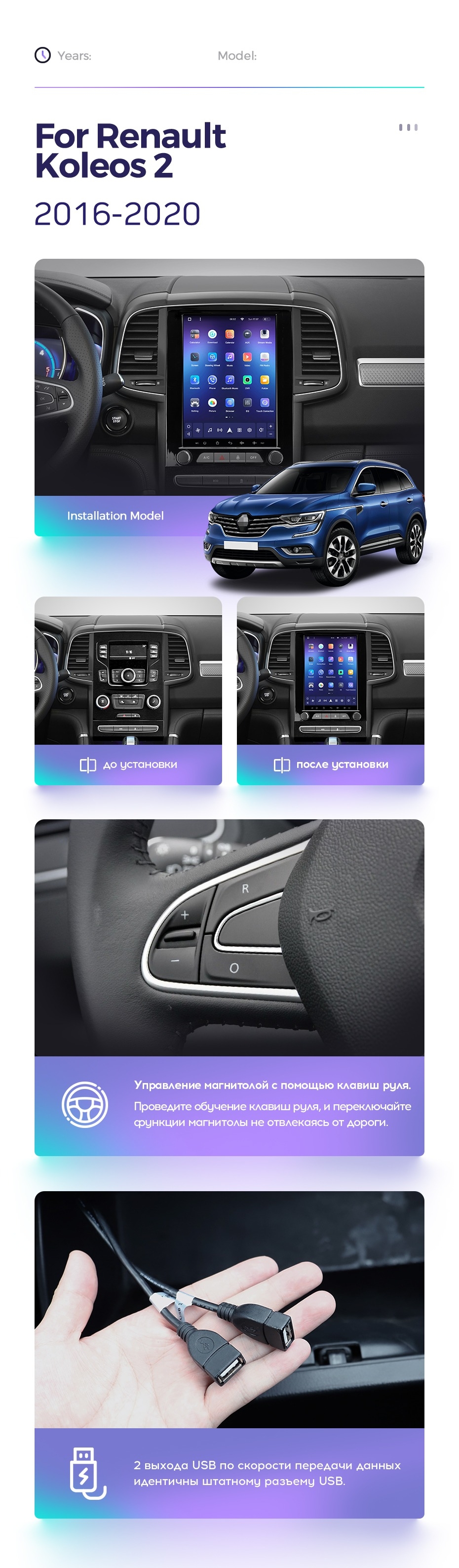 Полный комплект установки магнитолы Teyes с рамкой и проводкой можно выбрать в каталоге штатных магнитол Renault Koleos 2 (2016-2020).